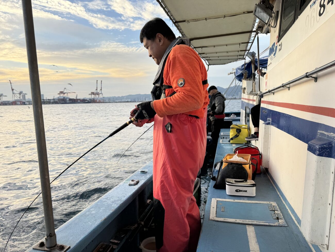 ポイントは神戸沖、沖と言っても六甲アイランドでポートアイランドの間ぐらいの場所。良い日にあたったようで、15時過ぎにポイントに到着すると、すぐにアジが釣れ出しました。